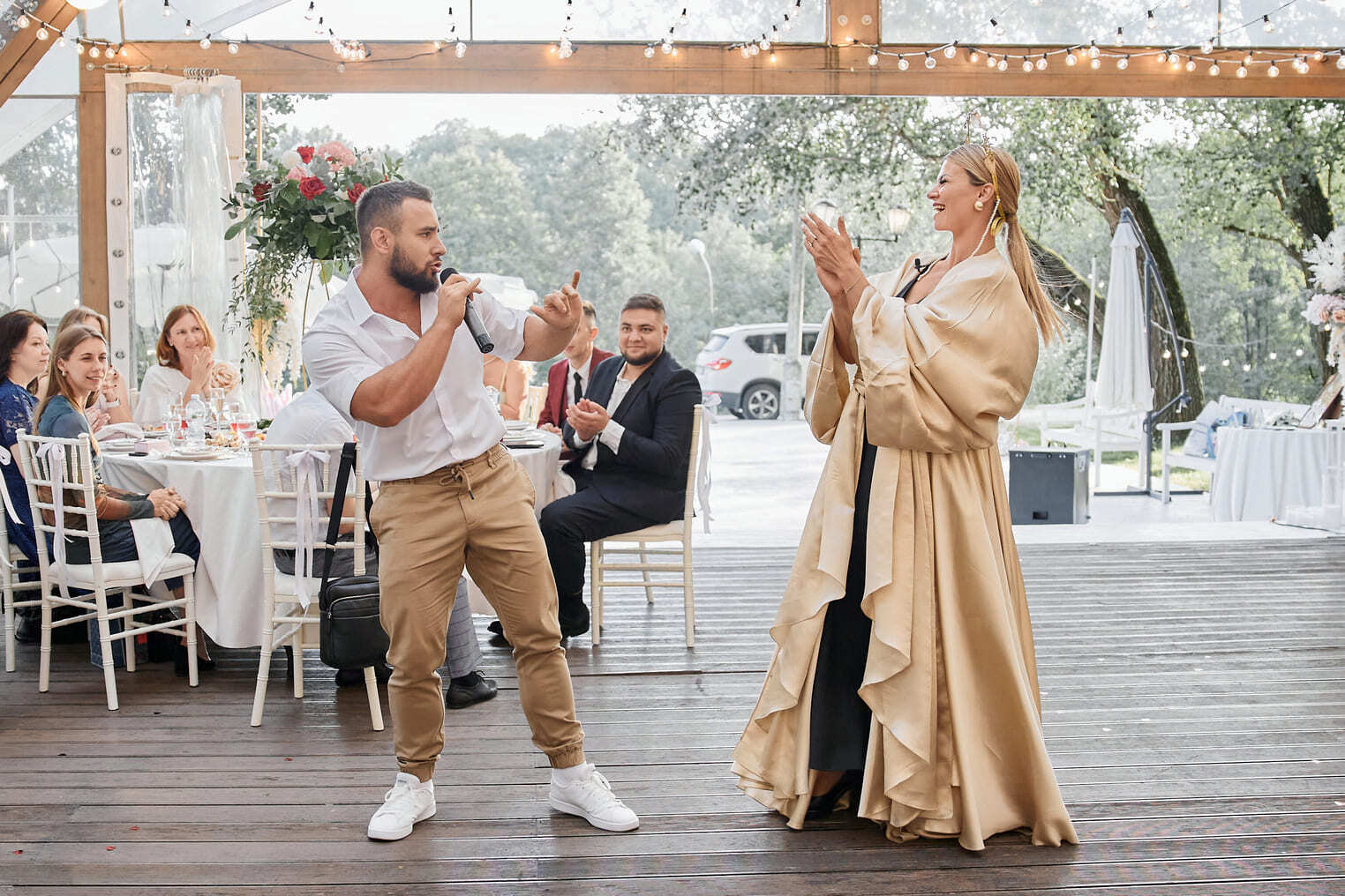 "Всё прошло просто замечательно! На площадке царила такая добрая, семейная, весёлая атмосфера, это невероятно! Весь вечер гости смеялись, танцевали, время от времени смахивали слёзы счастья. Все остались в диком восторге.Сердечное спасибо тебе!Ты настоящая зажигалочка!"