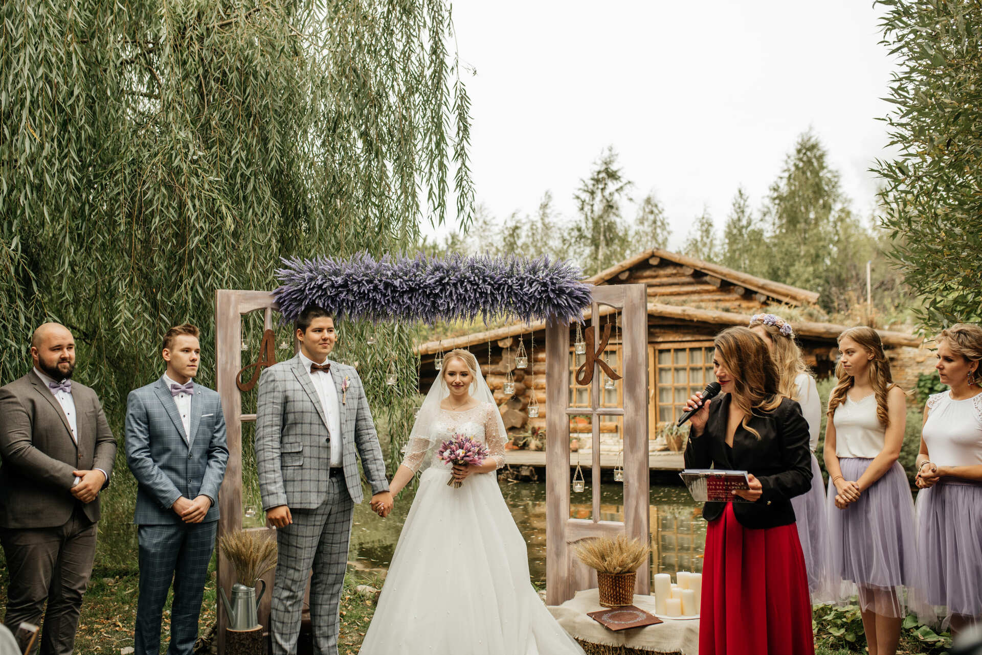 "Выездная церемония вдохновила и растрогала до слез. Нежная, трогательная, и местами юмористическая- все было лаконично и красиво! Отдельное спасибо за твое профессиональное чутье и умение подстраиваться под ситуацию - когда наши гости уже подустали (многие из-за перелета), конкурсы, которые не предполагали большой активности, были адаптирован и зашли на "Ура"!"